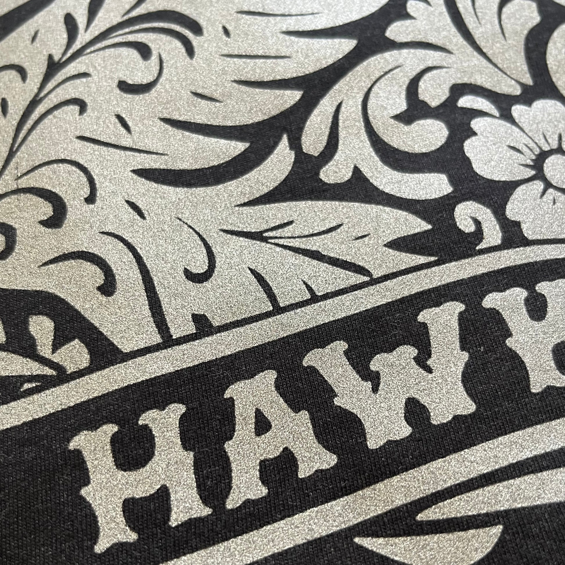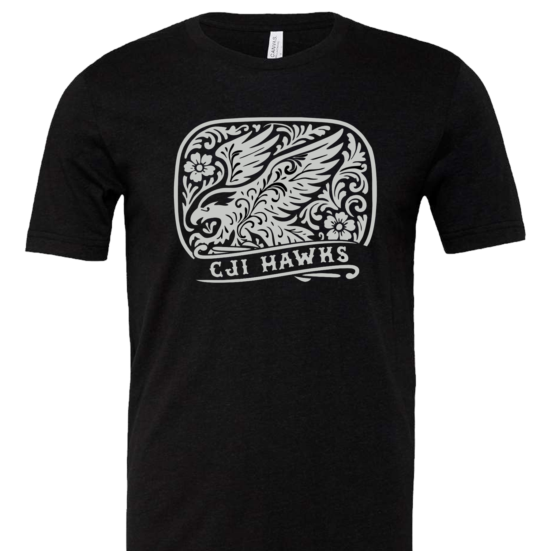 Add a little western flair to your Hawk wardrobe! Adult and youth sizes in long or short sleeve options, this metallic silver design will pop off the black fabric.