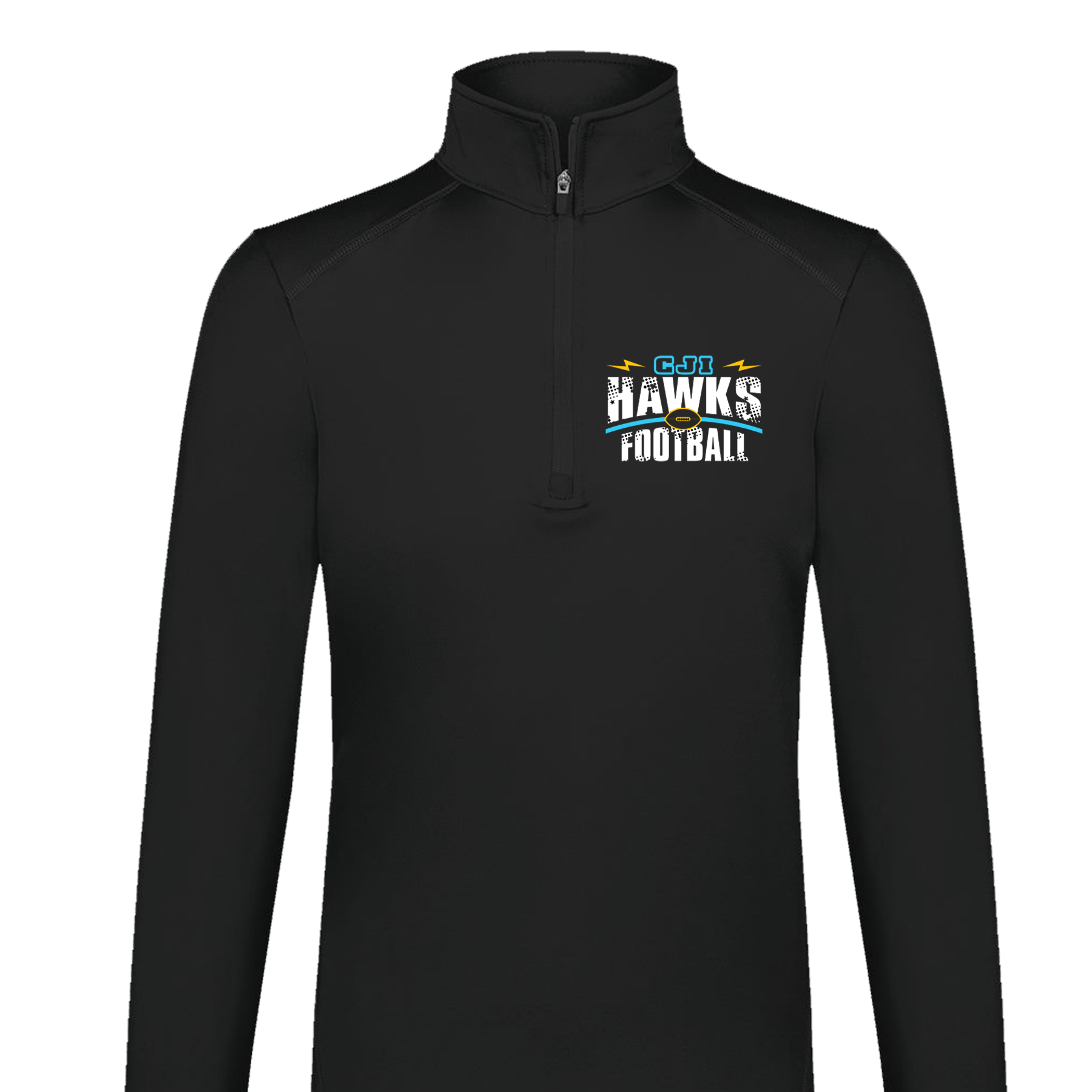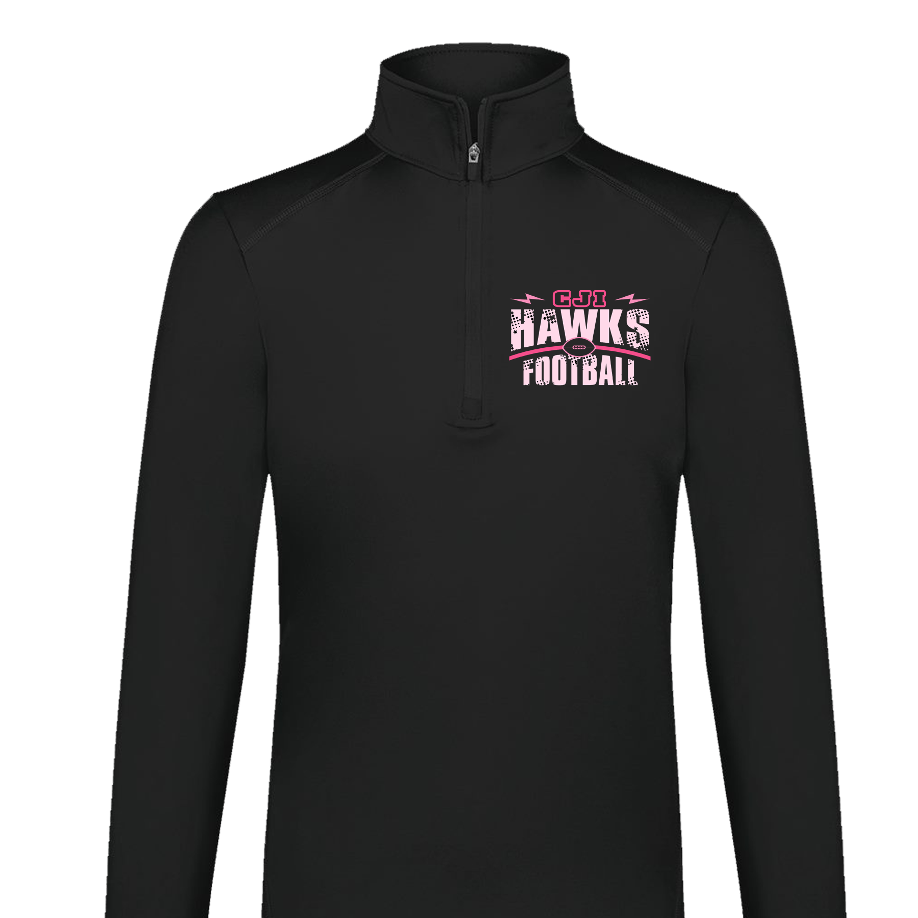 Our favorite 1/4 zip pullover in a solid black blend. Design is available in a classic blue and gold, as well as a pink option, perfect for October games.